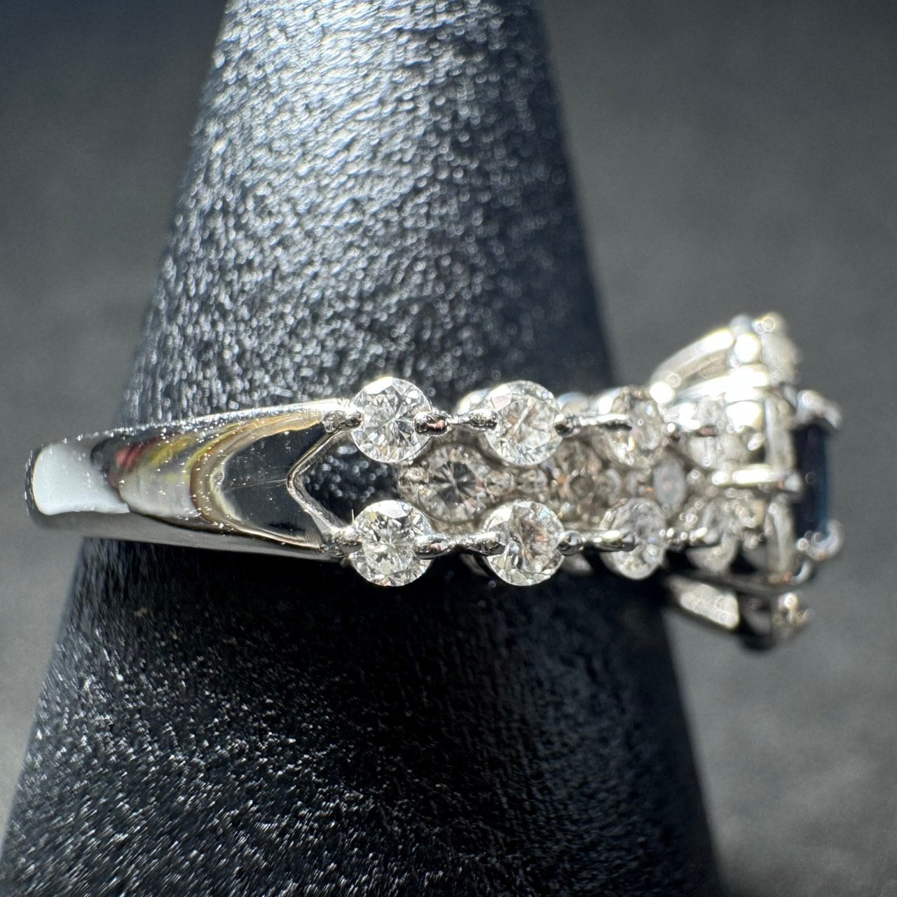 ・この貴重なアレキサンドライトを引き立てるのは、トータル0.82ctもの贅沢なダイヤモンド。花が咲くようにぐるりと囲んだ取り巻きデザインは、古くから愛されてきた王道のスタイル。サイドにも贅沢にあしらわれたメレダイヤが、指元にリズムと光を添え、あらゆる角度から高貴な輝きを放ちます。