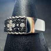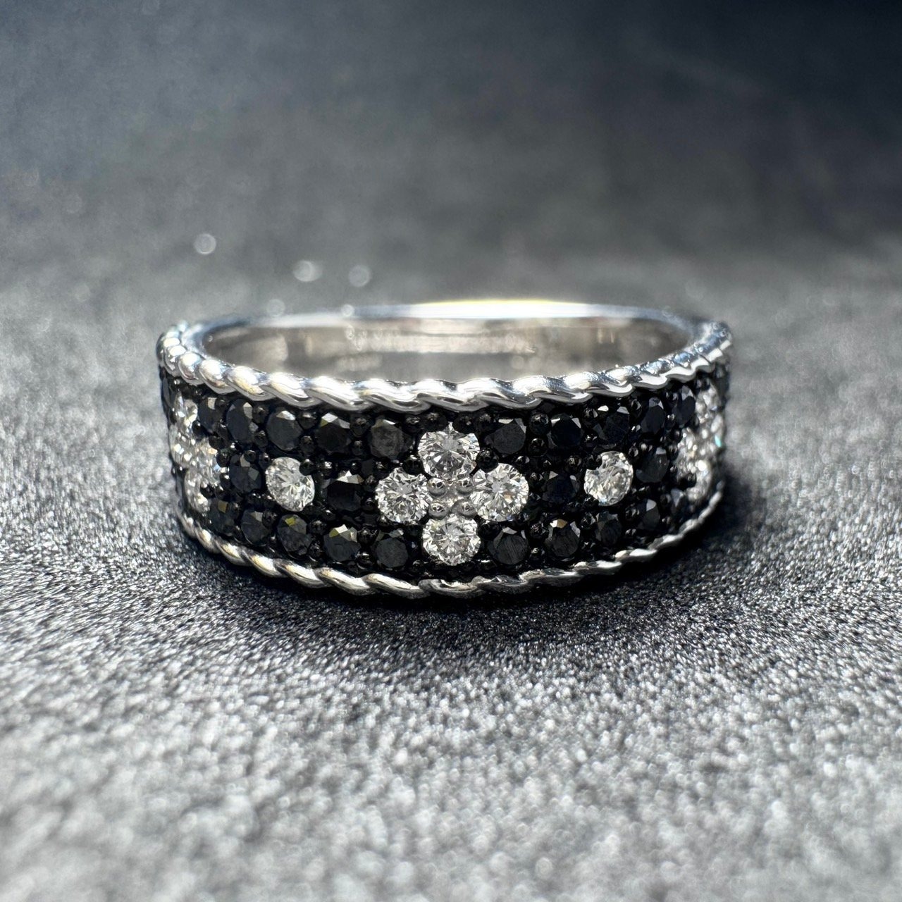 圧倒的な存在感と洗練された美しさを併せ持つブラックダイヤモンドリング。贅沢にセッティングされたブラックダイヤモンドとホワイトダイヤモンドが織りなす大胆なコントラストは、見る者の目を惹きつけて離しません。