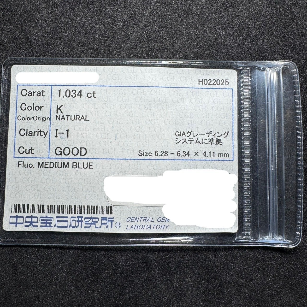 センターダイヤモンド 1.034ct K-I1-GOOD