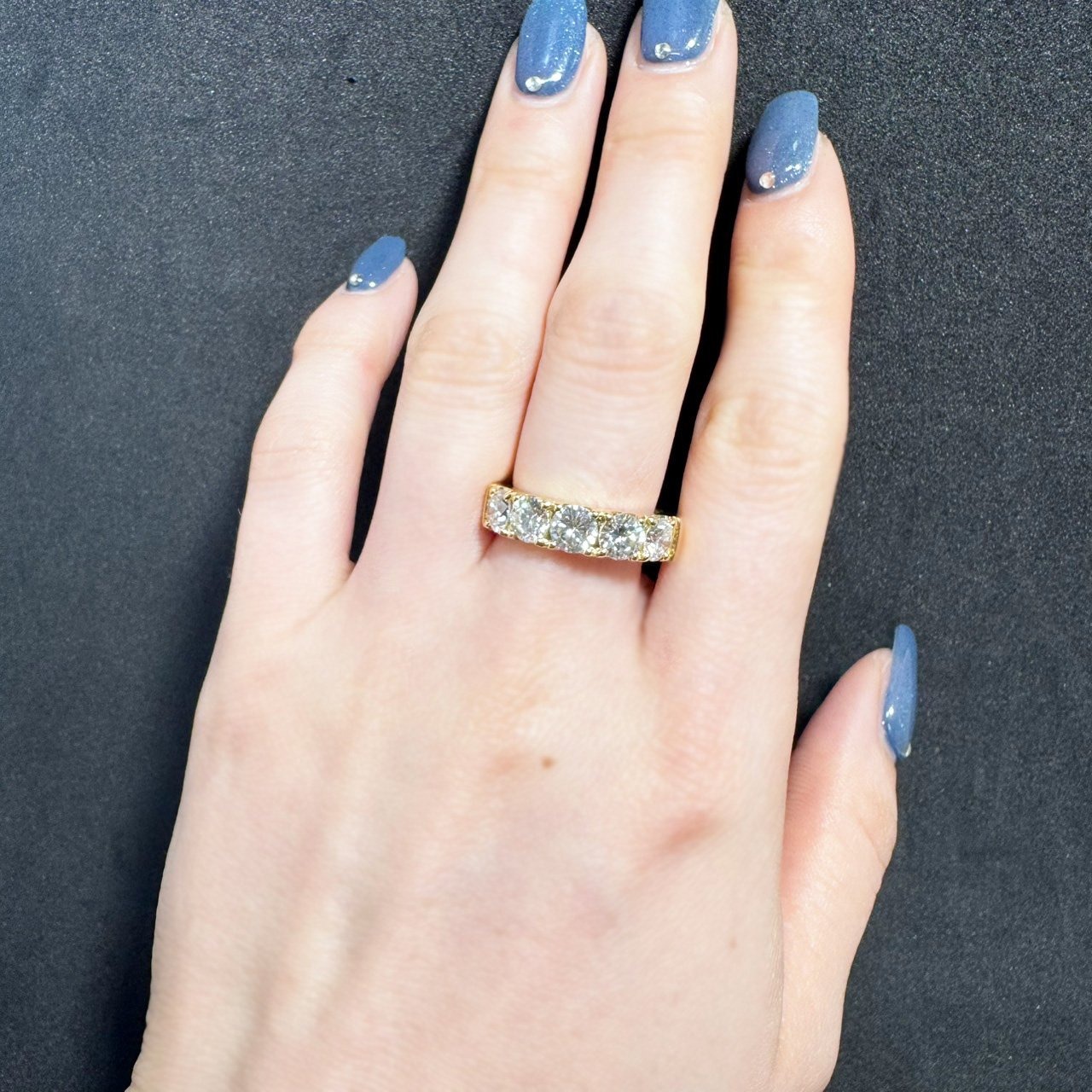 手元に圧倒的な存在感を。約0.4ctのラウンドブリリアントカットダイヤモンドを5pcセッティングした、まさにジュエリー上級者のための極上のエタニティリングです。トータル2.072ctの眩い輝きが、見る人すべての視線を惹きつけます。