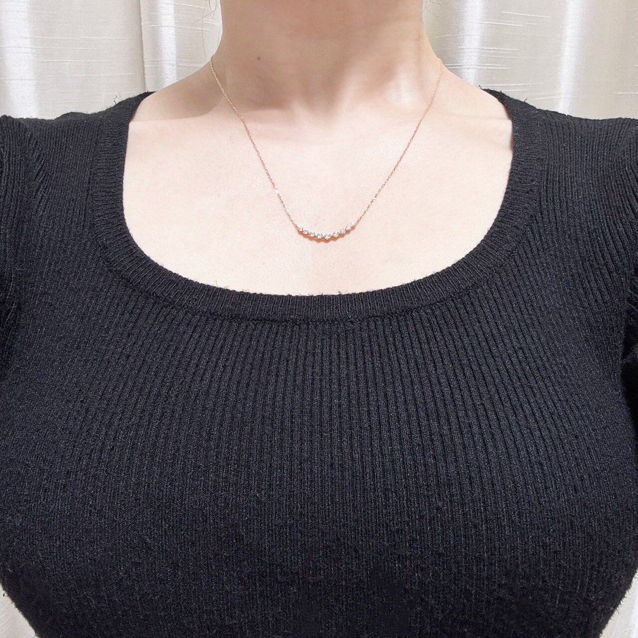 横一列にダイヤモンドを並べたデザインは、首元をすっきりと見せる効果があり、デコルテを美しく演出。シンプルな形状ながらも、程よいボリューム感があり、着けるだけでスタイルを格上げしてくれるジュエリーです。余計な装飾を省いたミニマルなデザインが特徴で、どんなファッションにも合わせやすいのが魅力。