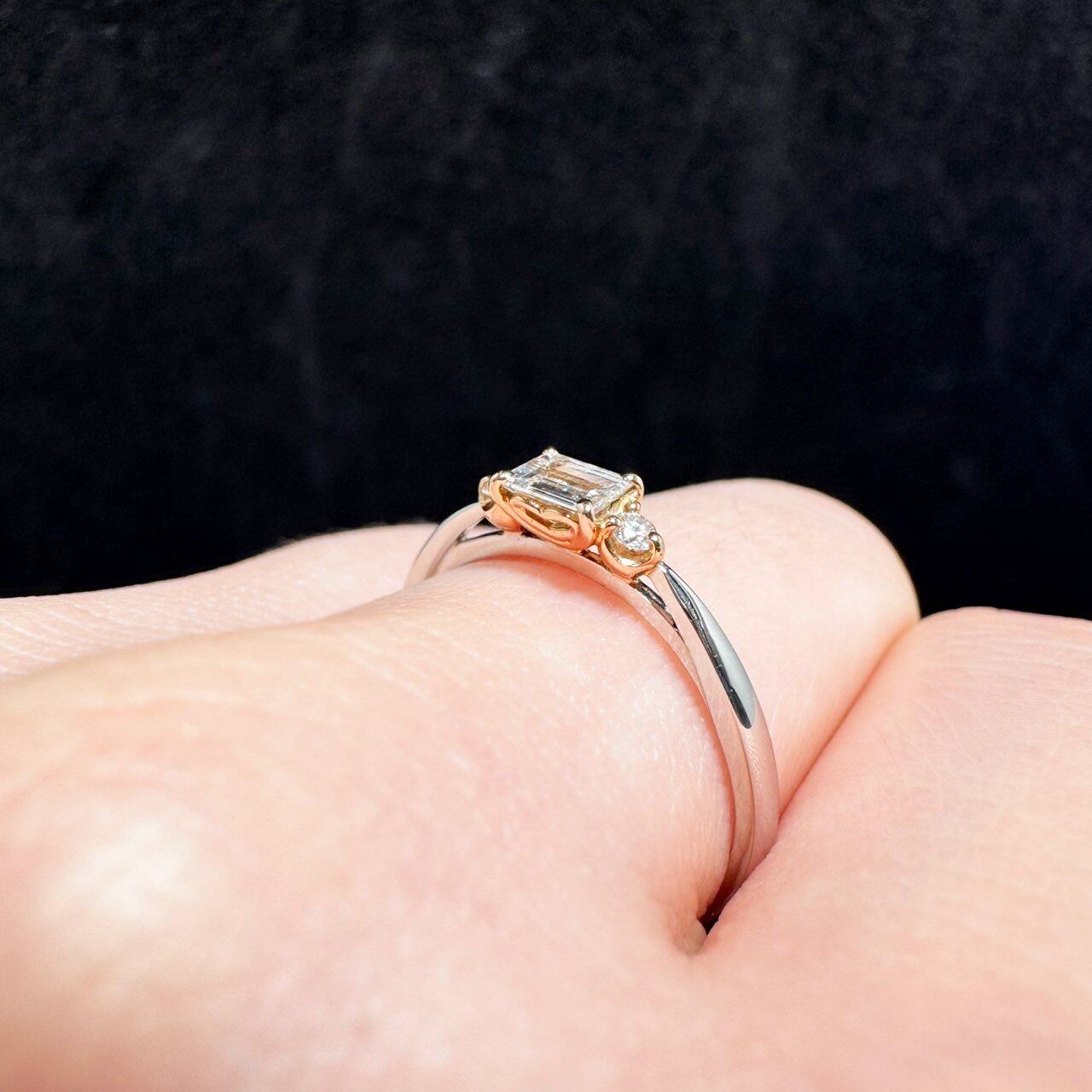 Pt/K18PG 0.184ct エメラルドカットダイヤモンド サイドメレリング