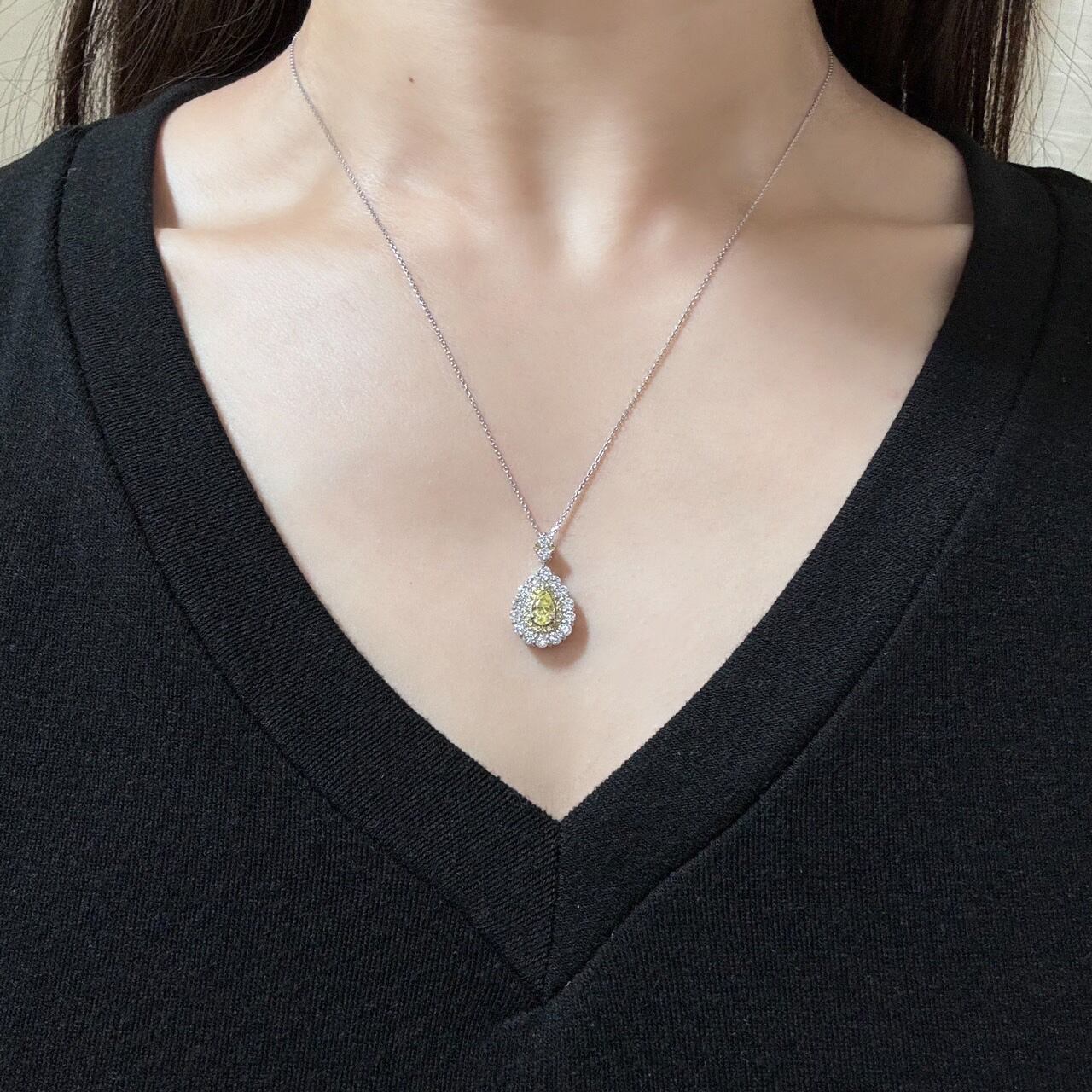 品質の良い希少なペアシェイプイエローダイヤモンドを主役にした、見とれるような輝きのネックレス。濃いイエローカラーが目を惹く、カラーダイヤモンドの品質にこだわった逸品です。