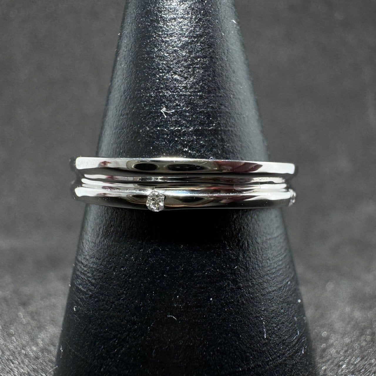 しっかりと厚みがあり、鏡面仕上げで輝くシンプルながら高級感のあるデザイン。さりげないメレダイヤモンドのセッティングで、遊び心も忘れません。