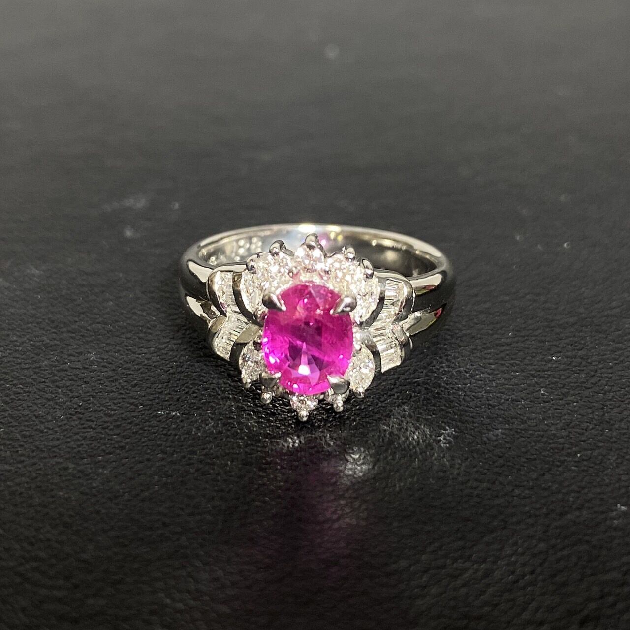 センター石は、ピンクの色味が強くくすみのないルビー。