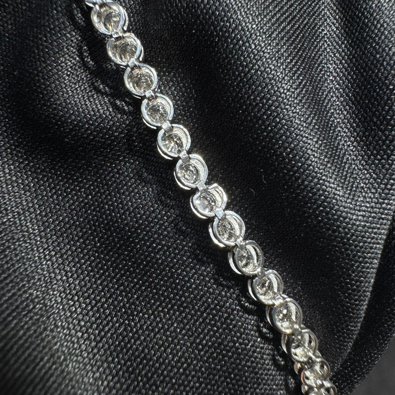 繊細な煌めきが途切れることなく連なる、王道のテニスブレスレット。一粒一粒のダイヤモンドが放つ白く澄んだ輝きが、手元の動きに合わせて上品にきらめきます。