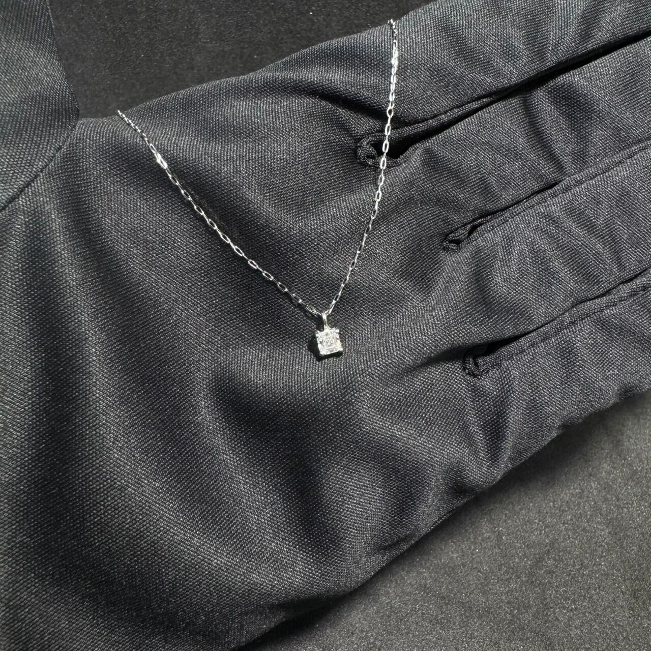Pt850/900 0.145ct エメラルドカット ダイヤモンド ネックレスでございます。