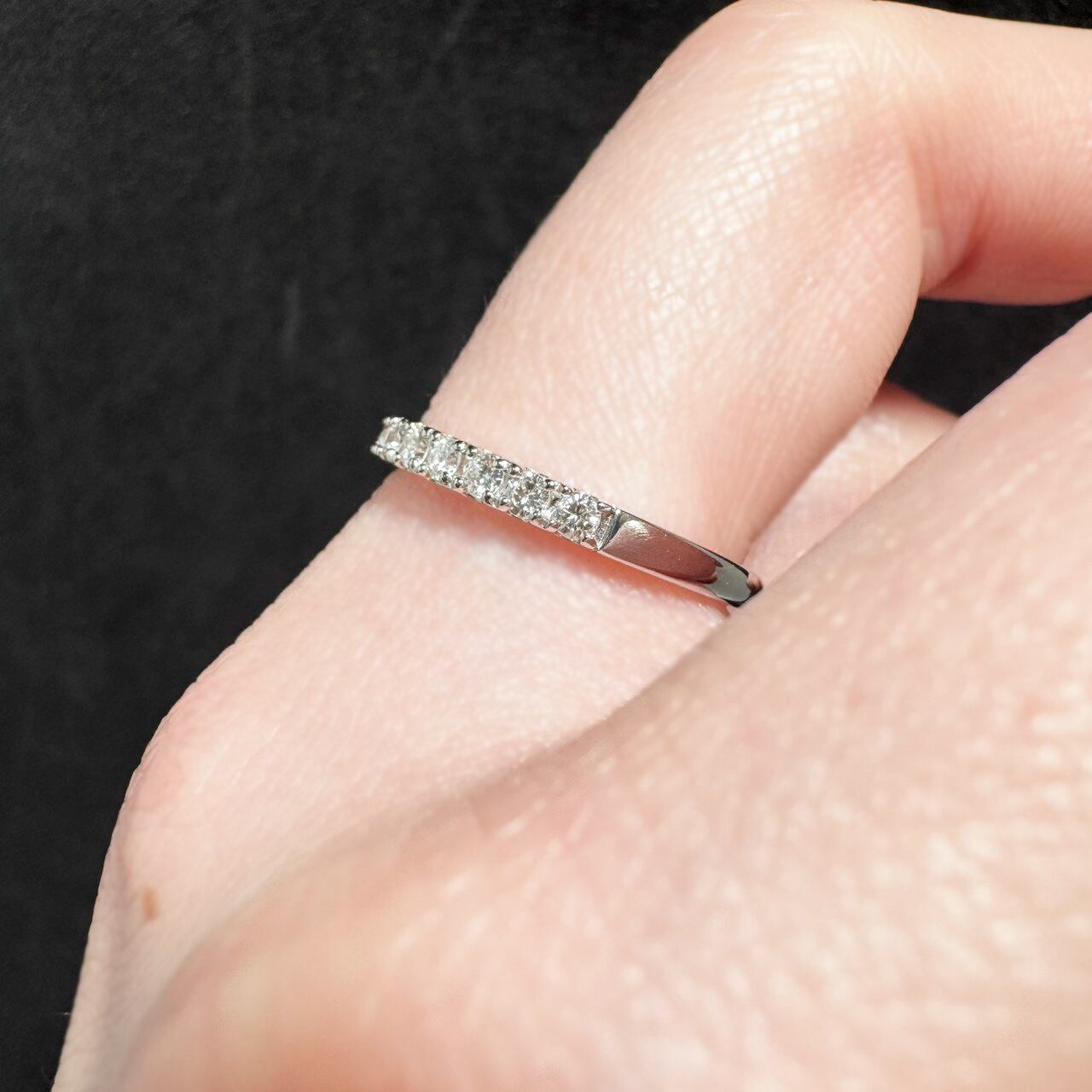 年齢を重ねるほどに似合う、上質な輝きを指元に。プラチナの凛とした光沢と、連なるダイヤモンドの繊細なきらめきが、大人の余裕を感じさせるエタニティリングです。シンプルだからこそ誤魔化しが効かない——本物志向の方にこそ選んでいただきたい一本。