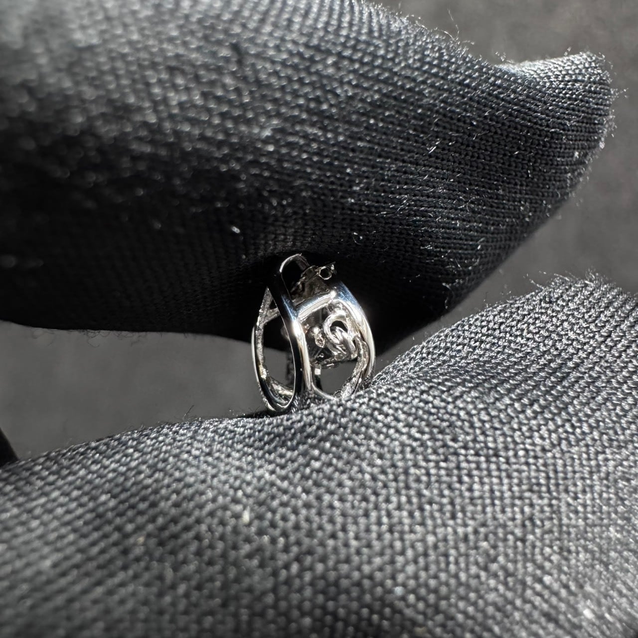 センターにセッティングされた天然ダイヤモンドが、わずかな動きにも反応して繊細に揺れ続けるダンシングセッティング。光を効率よく取り込み、0.05ctとは思えない存在感を演出します。控えめでありながら視線を引き寄せる、上品な輝きが魅力です。