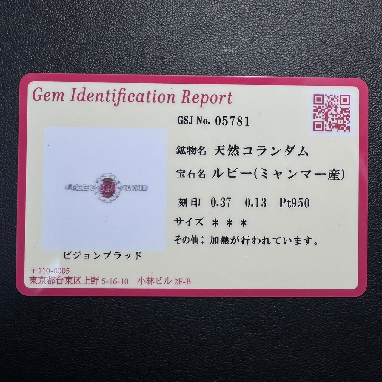 GSJ鑑別カード付き。