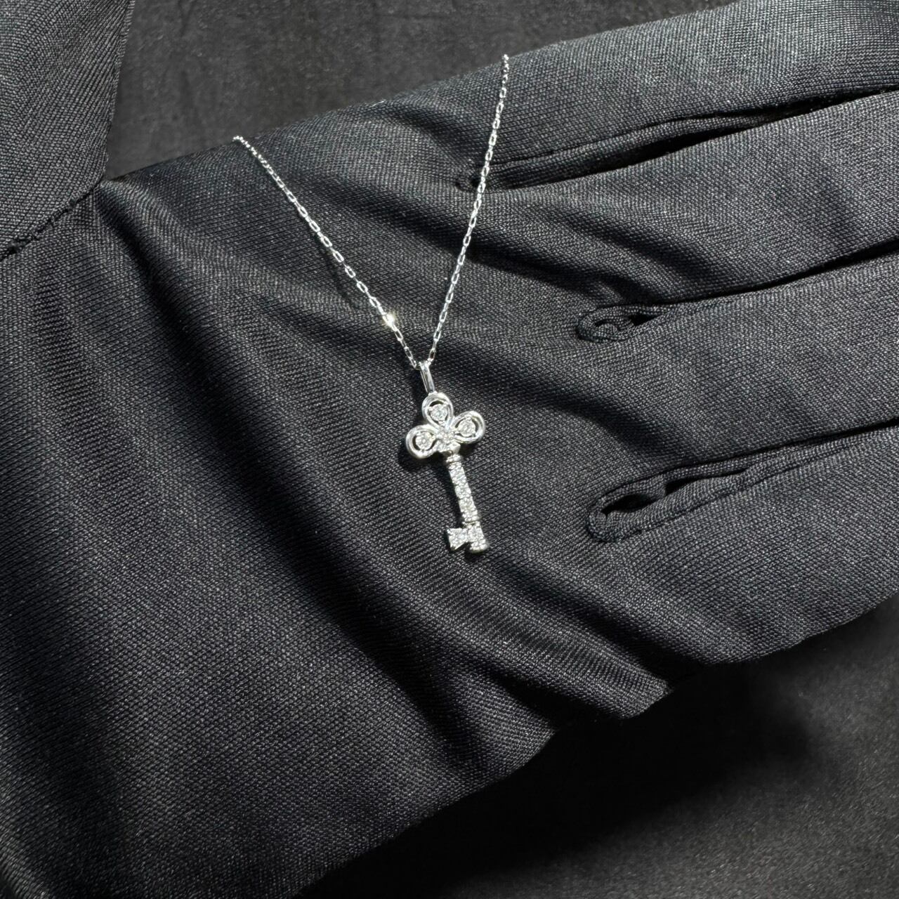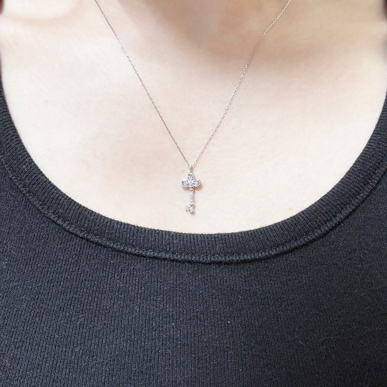 さりげない輝きで、胸元に物語を。繊細なキーモチーフにダイヤモンドをあしらった、上品で女性らしいネックレスです。主張しすぎないサイズ感ながら、細部まで丁寧に作り込まれたデザインが印象的で、日常使いからお出かけまで幅広く活躍します。