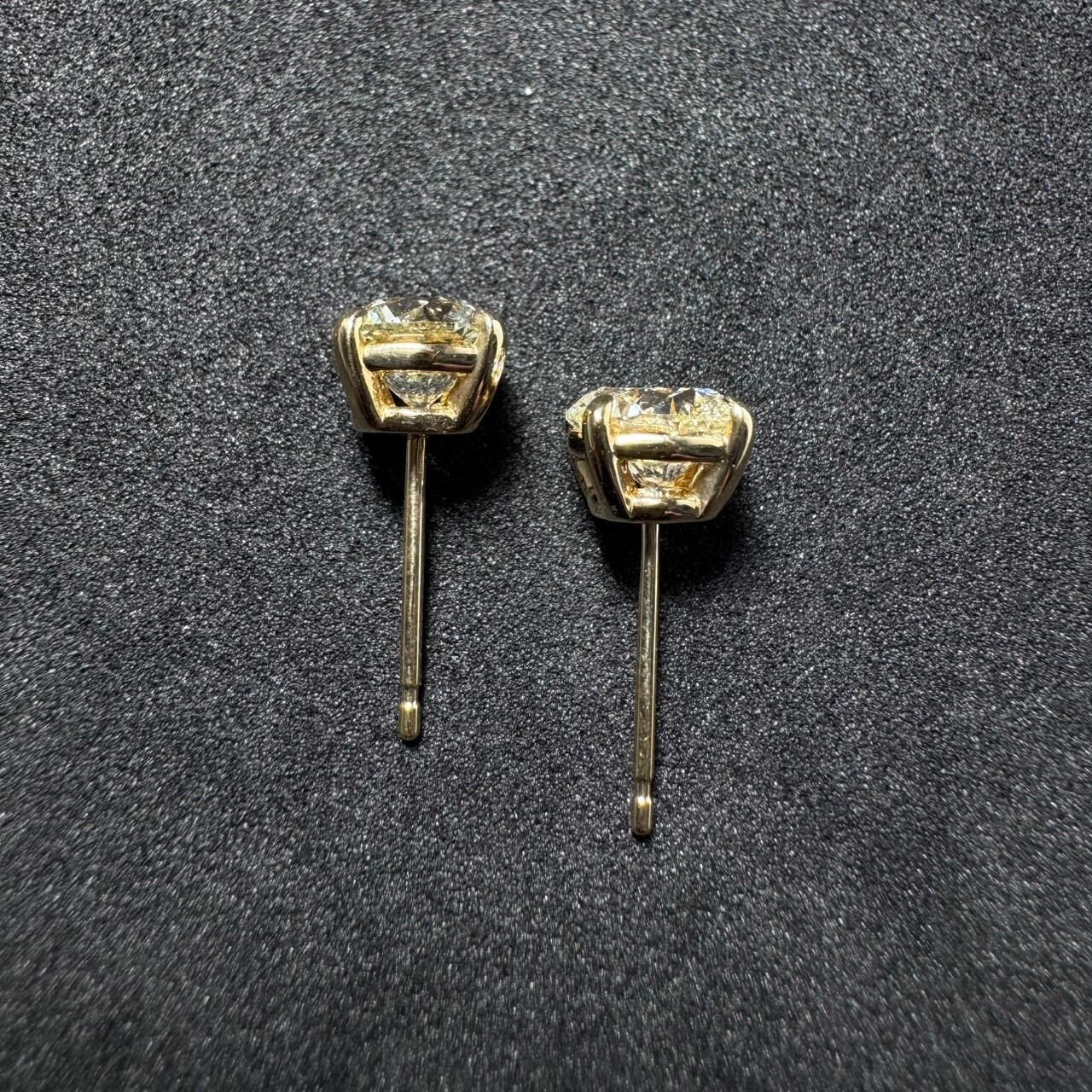 K18YG 2.07ct 一粒 ダイヤモンド ピアス シンプル 4本爪でございます。