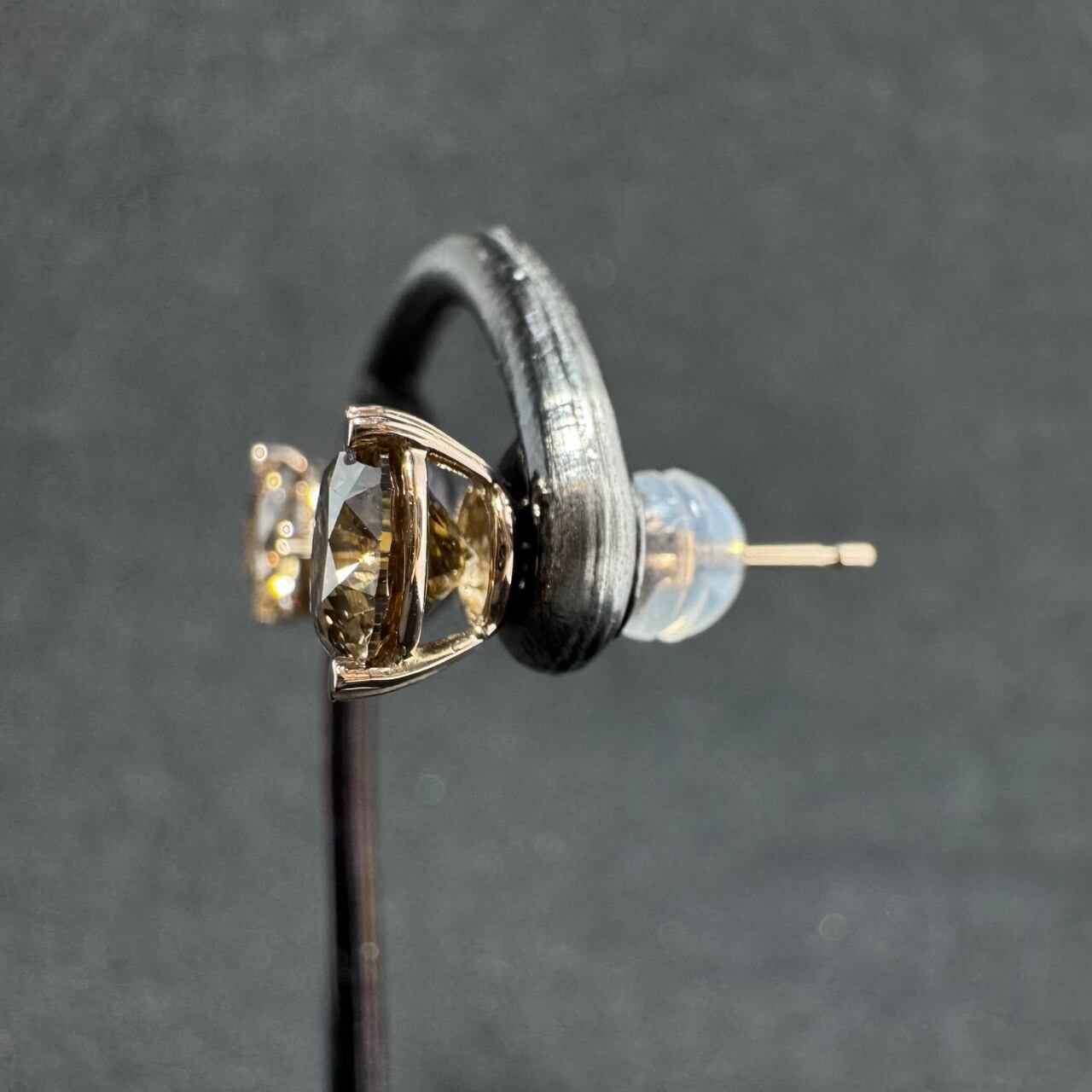 落ち着いたブラウンカラーのダイヤモンドを、柔らかなピンクゴールドで包み込んだ一粒ピアス。片耳1ctを超えるしっかりとしたサイズ感がありながらも、色味のトーンが優しいため、主張しすぎず肌に自然と馴染みます。さらに爪部分にはさりげなくハートモチーフを取り入れ、シンプルな中に遊び心をプラス。大人っぽさと可愛らしさを両立した、他にはない個性を楽しめるアイテムです。